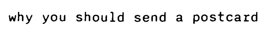 1. Because the only things that unexpectedly get posted through our letterboxes these days are either junk mail or bills. If you’re lucky, a Chinese takeaway menu2. Because the act of writing, sending, and receiving a postcard is a tactile experience –– and touch is lovely! Kissing, cradling a warm cup of tea, plucking grass = very nice and very lovely. Knowing that what you are holding was also touched by your friend, especially if that friend is far away = even lovelier :-)3. Because an excess of digital communication can make connection feel flat and this flatness only elongates distance4. Because surprises are still surprises even when they’re small. (Small ones are often the sweetest)5. Because when was the last time you sent one?